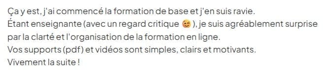 Vous avez ainsi le temps de découvrir la première partie du parcours, de tester les premiers exercices et de sentir si cette approche correspond à vos attentes.